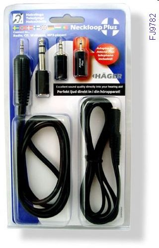 For use with above phones and mp3, radio etc.. Soft neckloopa with 3.5mm plugg. 1.5 m extention cord. Adaptor for 6.3mm stereo. Adaptor for 2.5mm stereo. Adaptor for FJ978 och FJ973. |